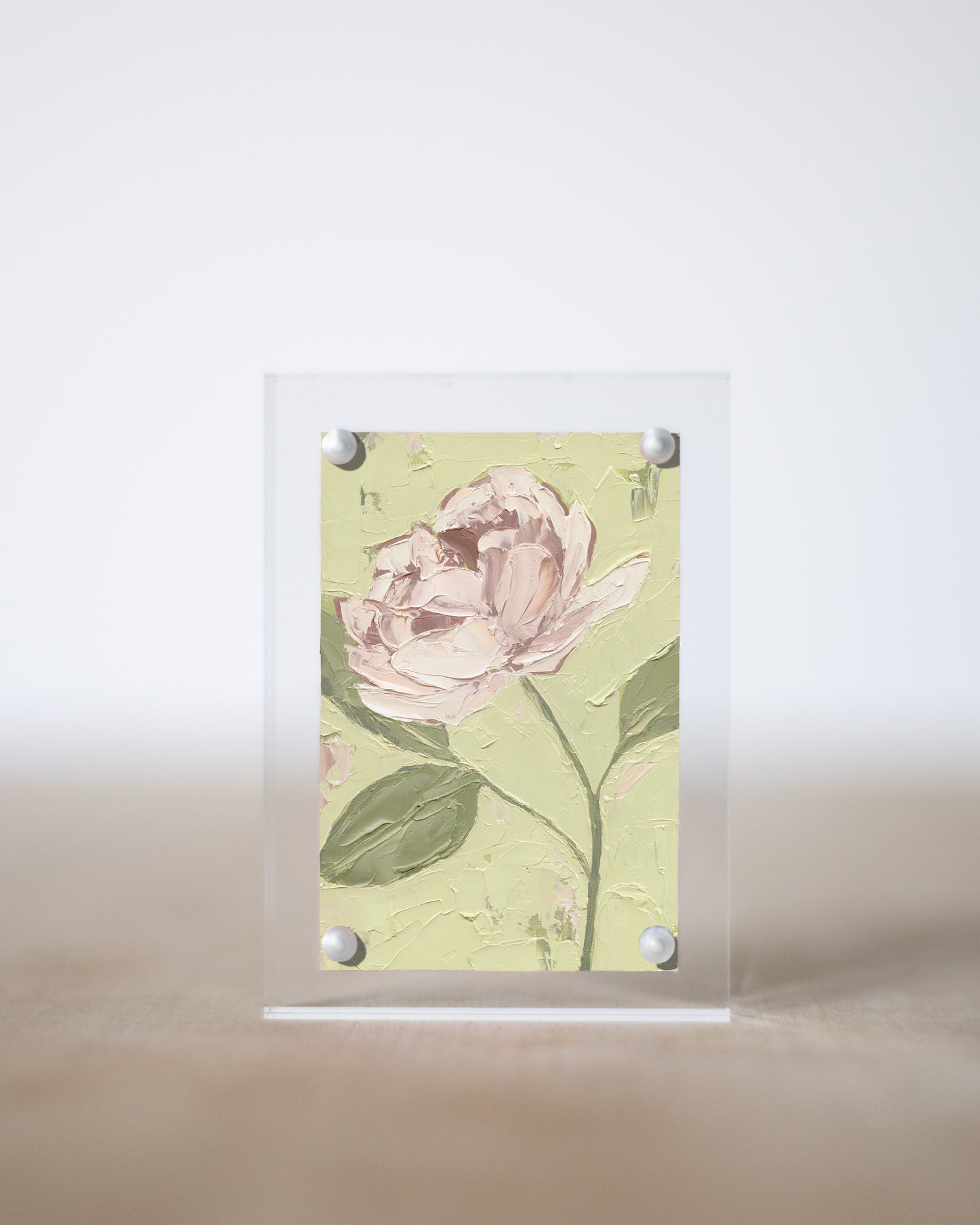 The mini prints are 2x3" and can be purchased with or without a mini acrylic frame, shown in the pictures above. These mini prints in our acrylic frame are so versatile and are the perfect touch to brighten up any space. Display them on your nightstand or desk at work to add a artistic pop to your space.